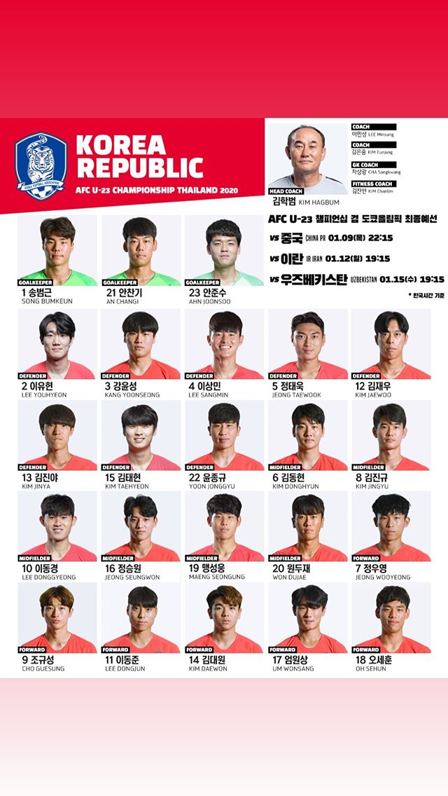 8강 우즈벡전 연장 후반 7분에 교체되며 8분을 쉰 것을 제외하고 항상 그라운드에 있었다. 김진야 는 대한민국의 축구 선수이다. 현재 k리그1의 fc 서울 소속이다. 다비드 데 헤아 유니폼 등번호 1. 2019년 12월 13일 fc 서울로 이적이 공식 발표되었다.